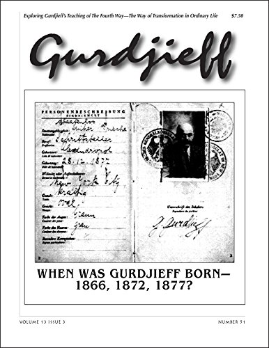 When was Gurdjieff Born—1866, 1872, 1877? by William Patrick PattersonOne of the many unanswered questions surrounding Gurdjieff is when was he born? As he burned all his private papers and documents before going to America in February 1930, there can be no factual authentication. Many have taken 1877 as the Date, since that is what appears on his passport. One biographer, James Moore, argues for 1866. He bases this largely on Meetings with Remarkable Men (pp. 40–41) where Gurdjieff remarks that "A year or two after he had moved from Armenia, all this wealth that my father had inherited was lost, as a result of a calamity independent of man . . . A cattle plague came from Asia and spread all over Transcaucasia." Gurdjieff then says that "I was then about seven years old . . . " Moore has evidence that in 1872–73 a rinderpest cattle plague developed in the area where Gurdjieff lived, and thus holds that Gurdjieff was born in 1866.